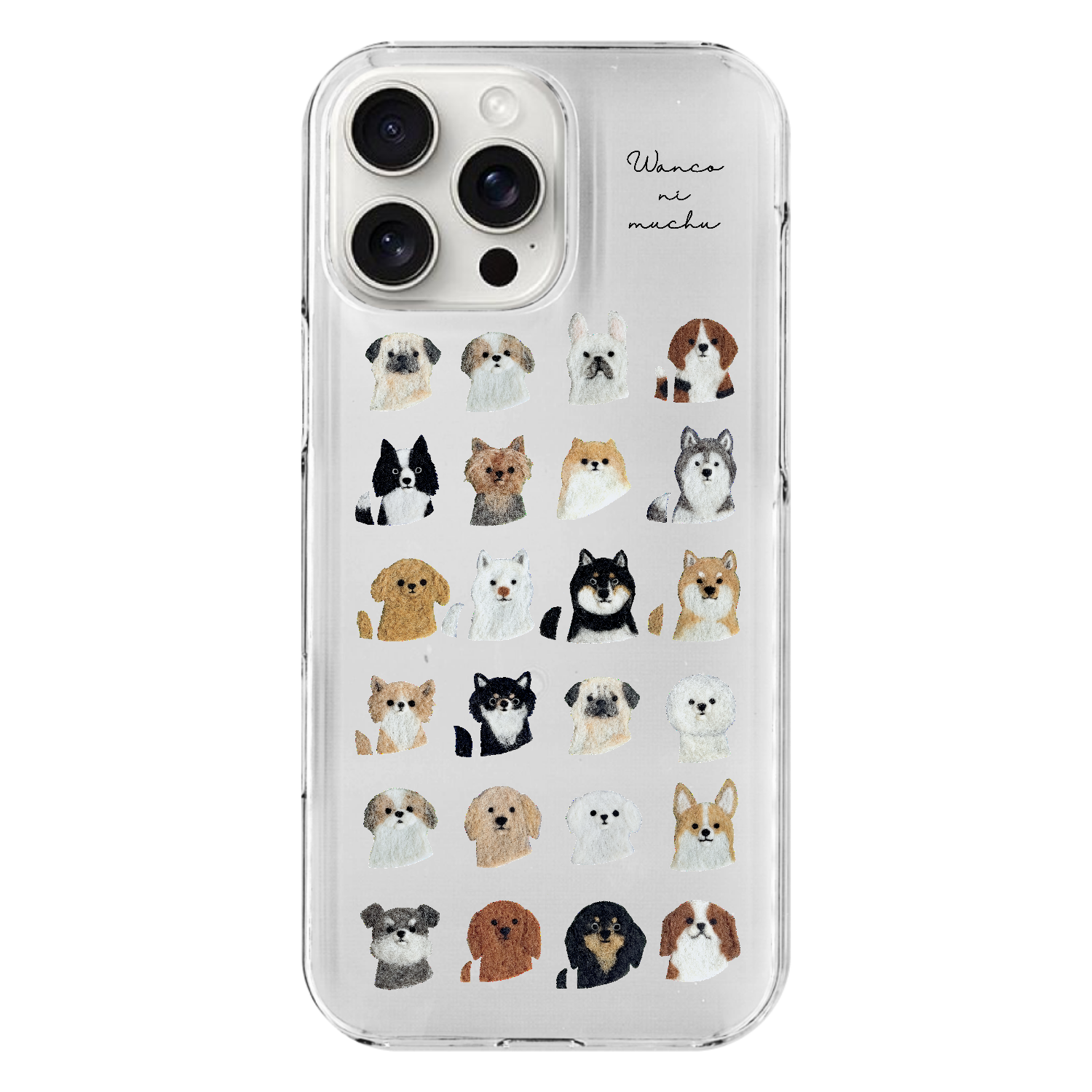 犬好きさんのための、わんこいっぱいのクリアスマホケースです。