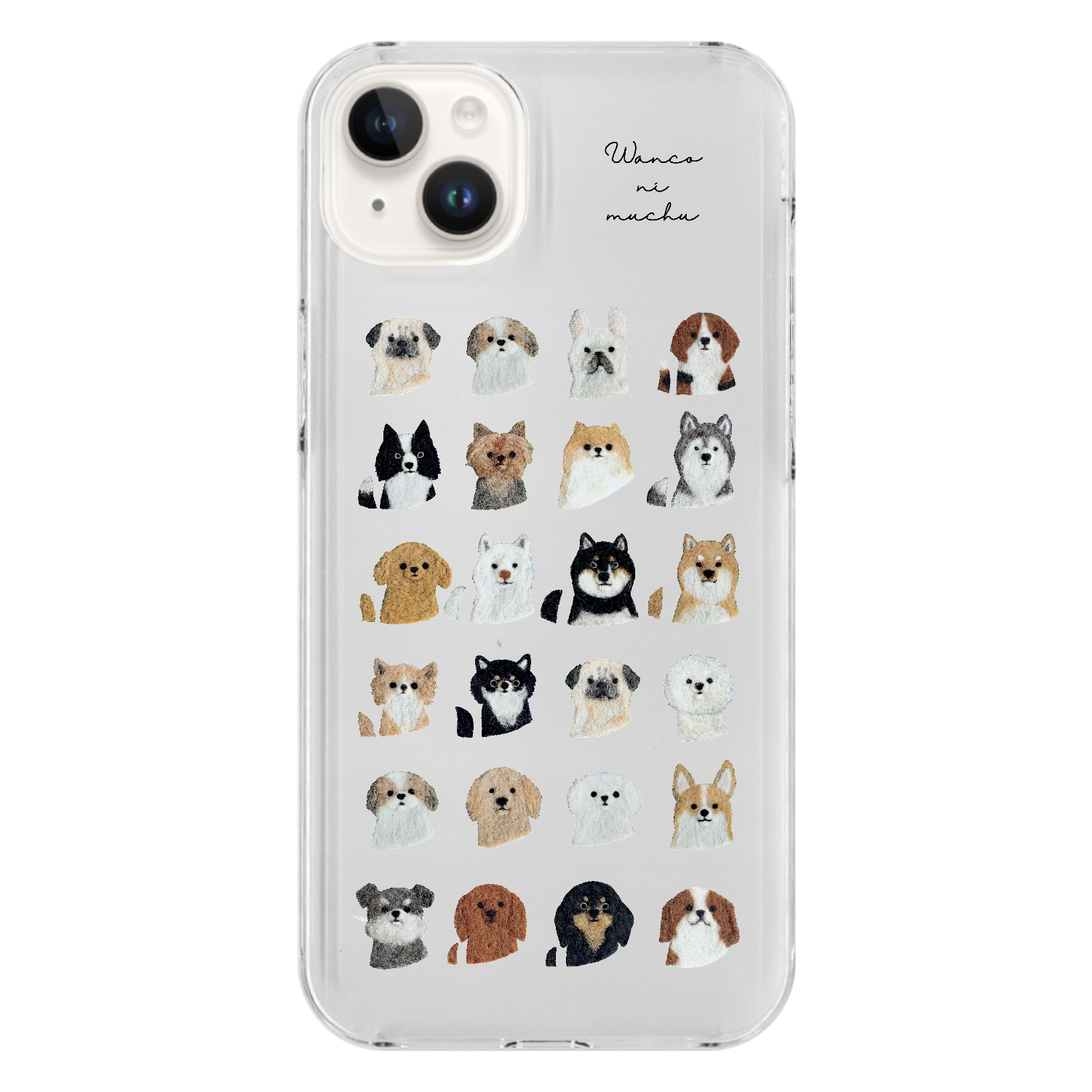 犬好きさんのための、わんこいっぱいのクリアスマホケースです。