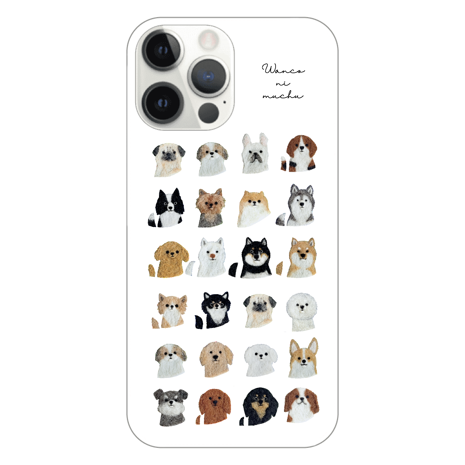犬好きさんのための、わんこいっぱいのクリアスマホケースです。