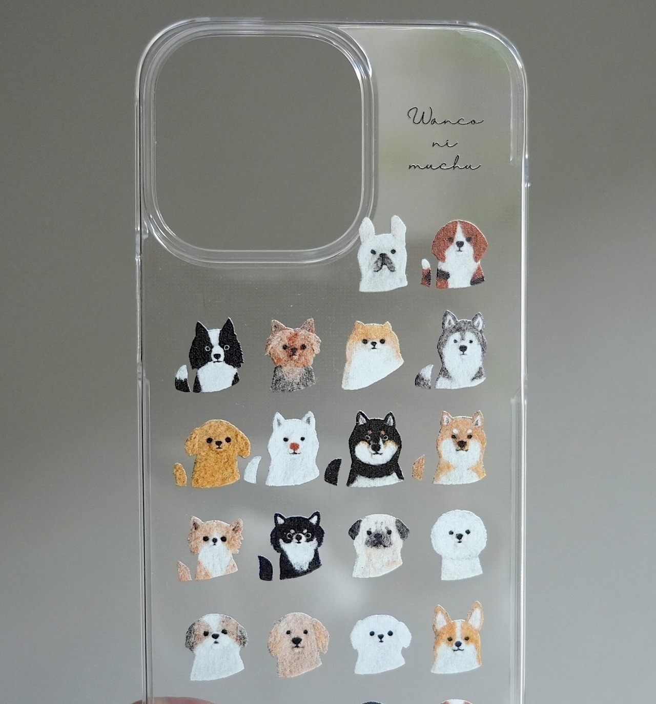 犬好きさんのための、わんこいっぱいのクリアスマホケースです。