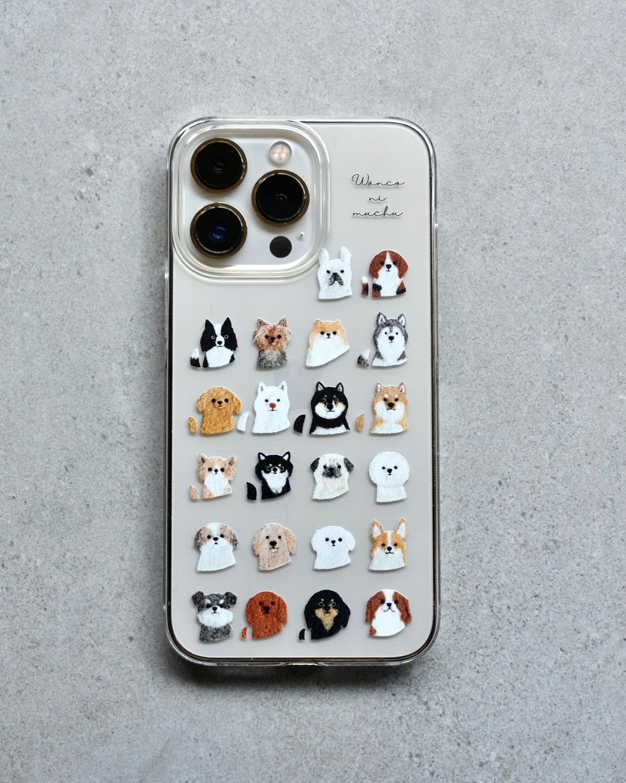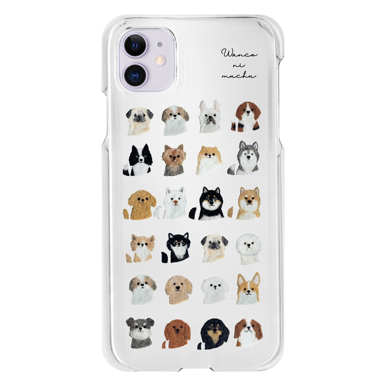 犬好きさんのための、わんこいっぱいのクリアスマホケースです。