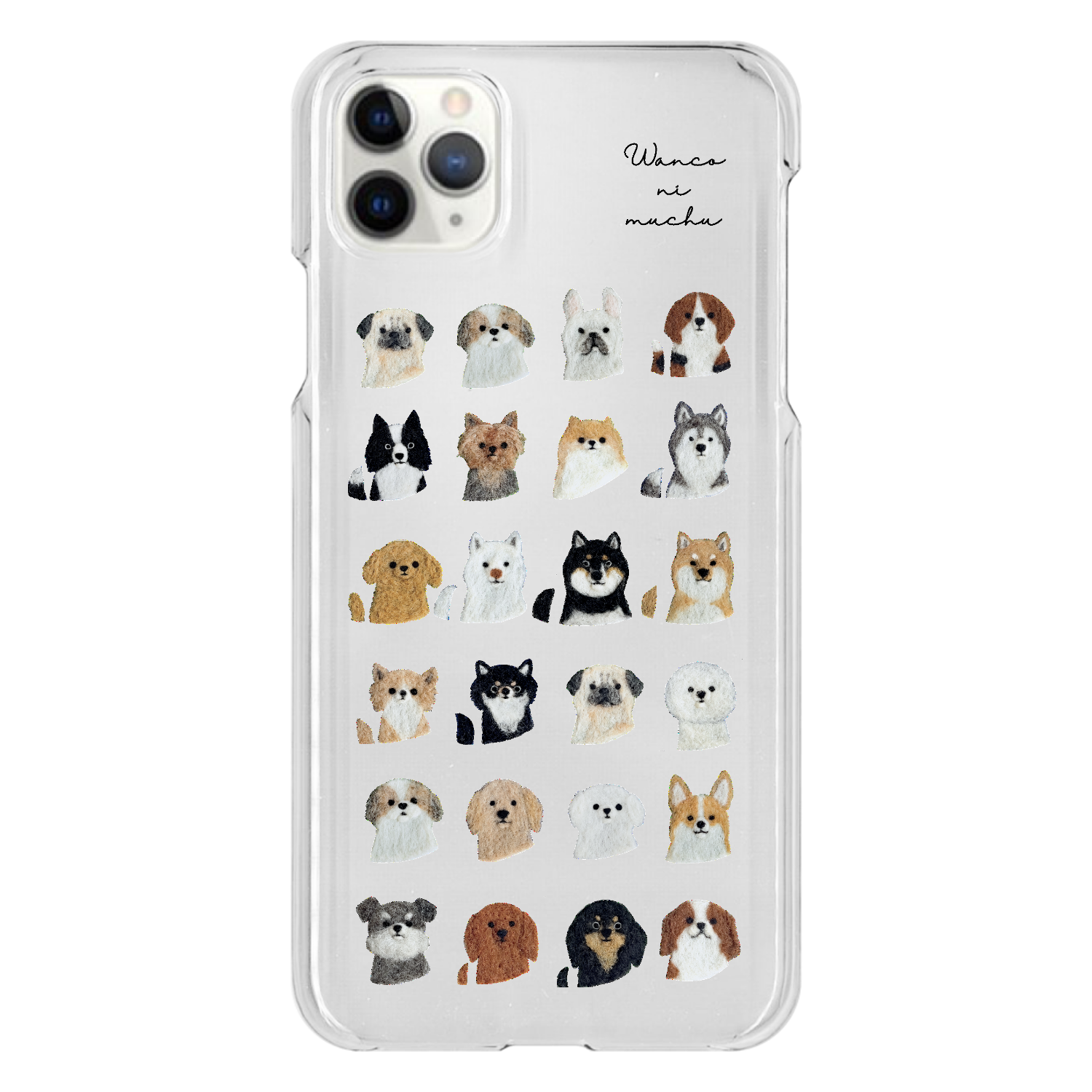 犬好きさんのための、わんこいっぱいのクリアスマホケースです。