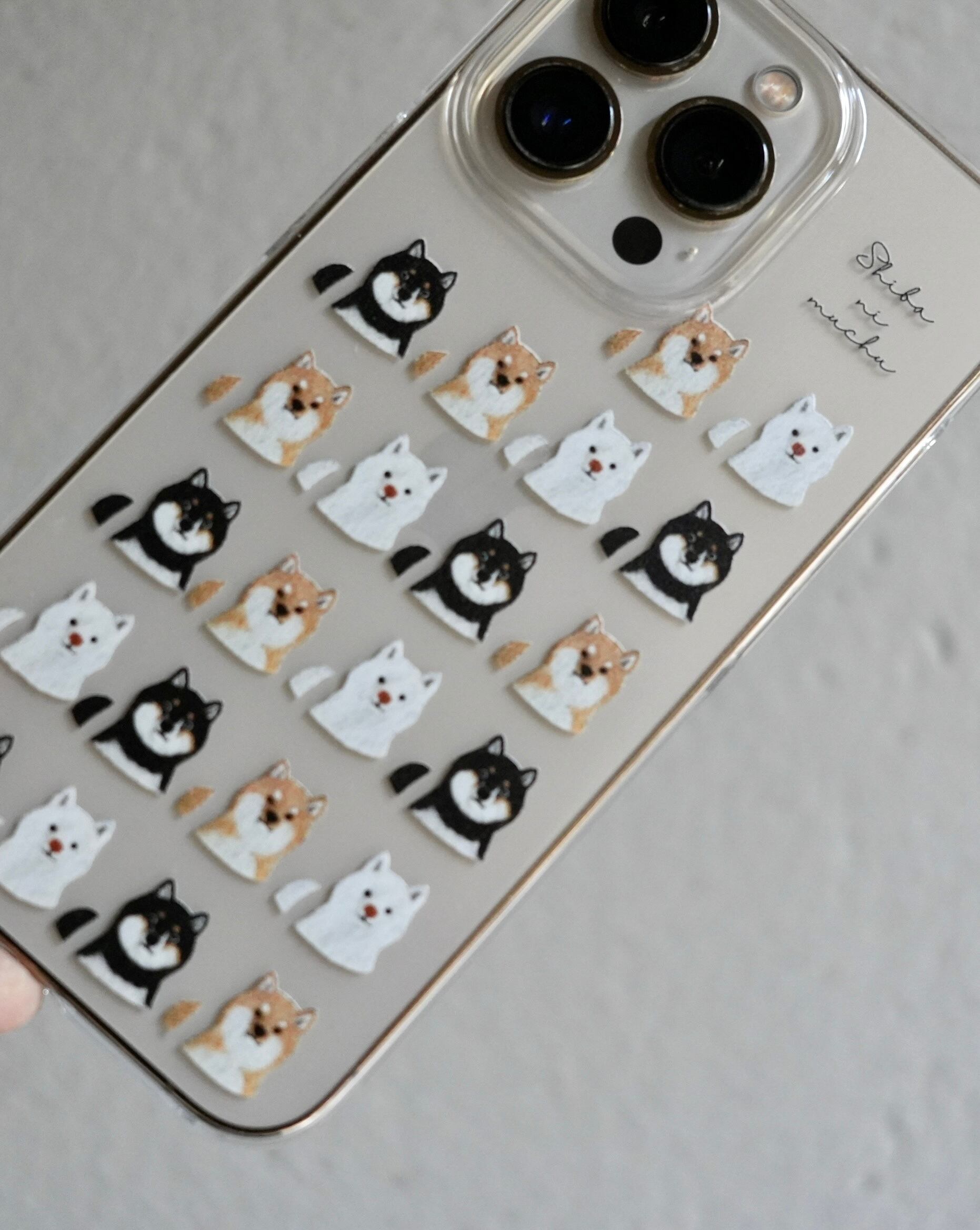 柴犬好きさんのための、柴犬いっぱいのクリアスマホケースです。