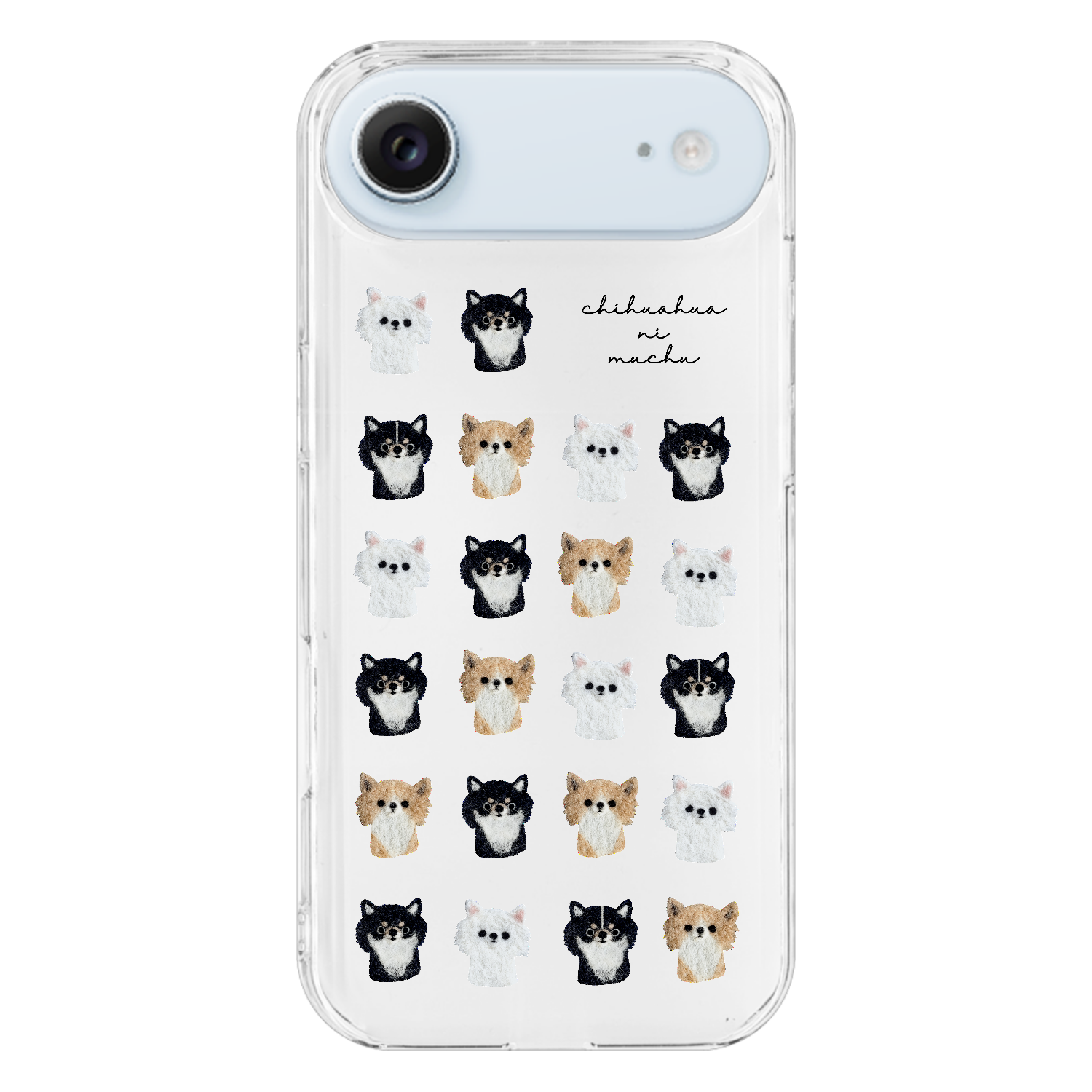 チワワ好きさんのための、チワワいっぱいのクリアスマホケースです。