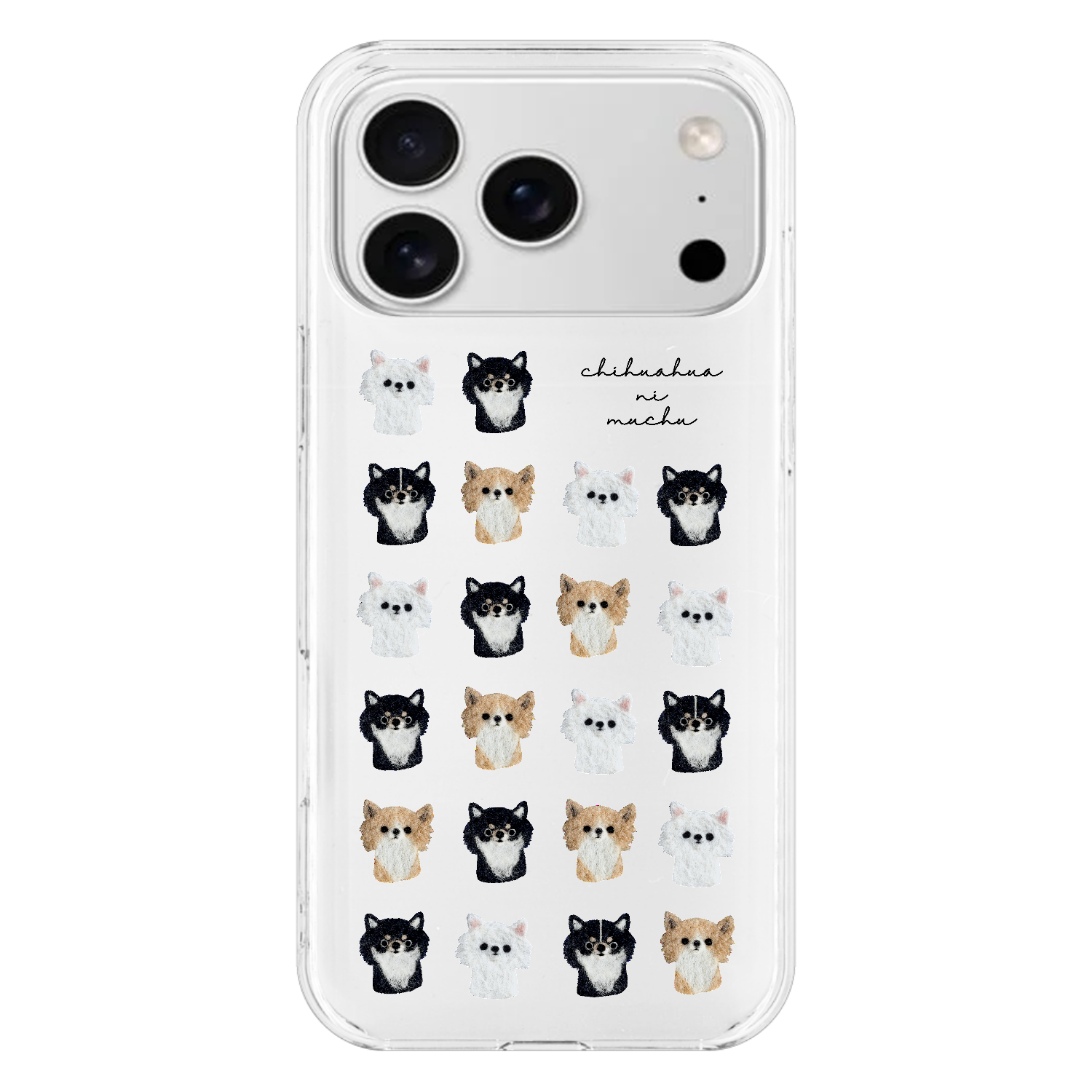 チワワ好きさんのための、チワワいっぱいのクリアスマホケースです。