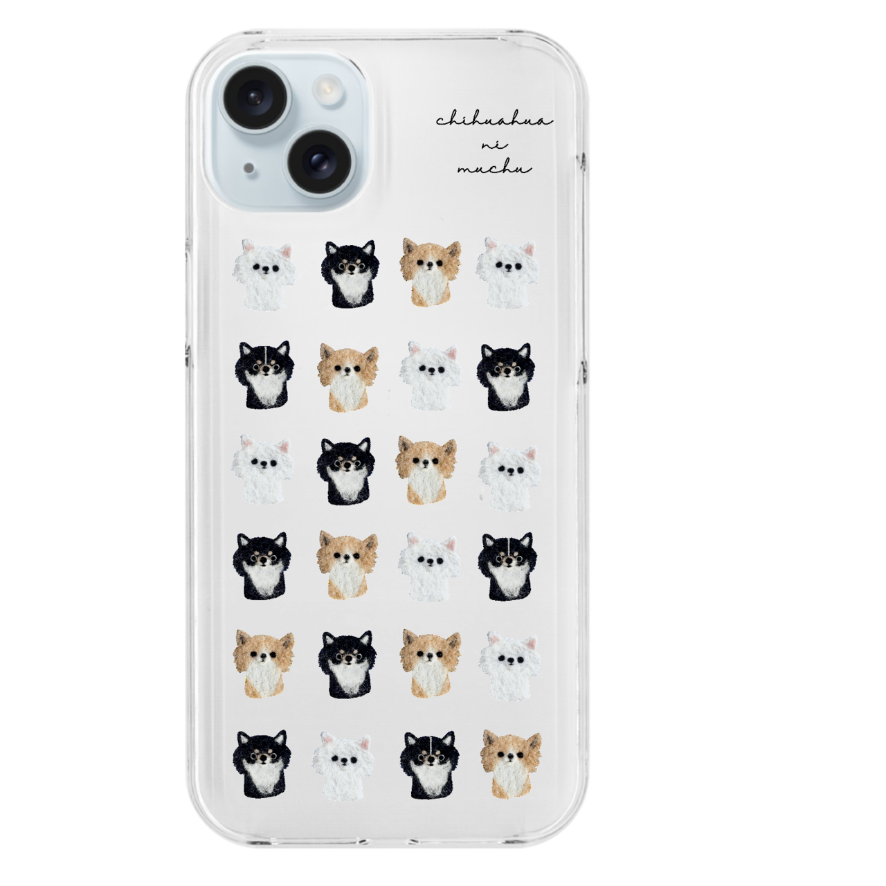 チワワ好きさんのための、チワワいっぱいのクリアスマホケースです。