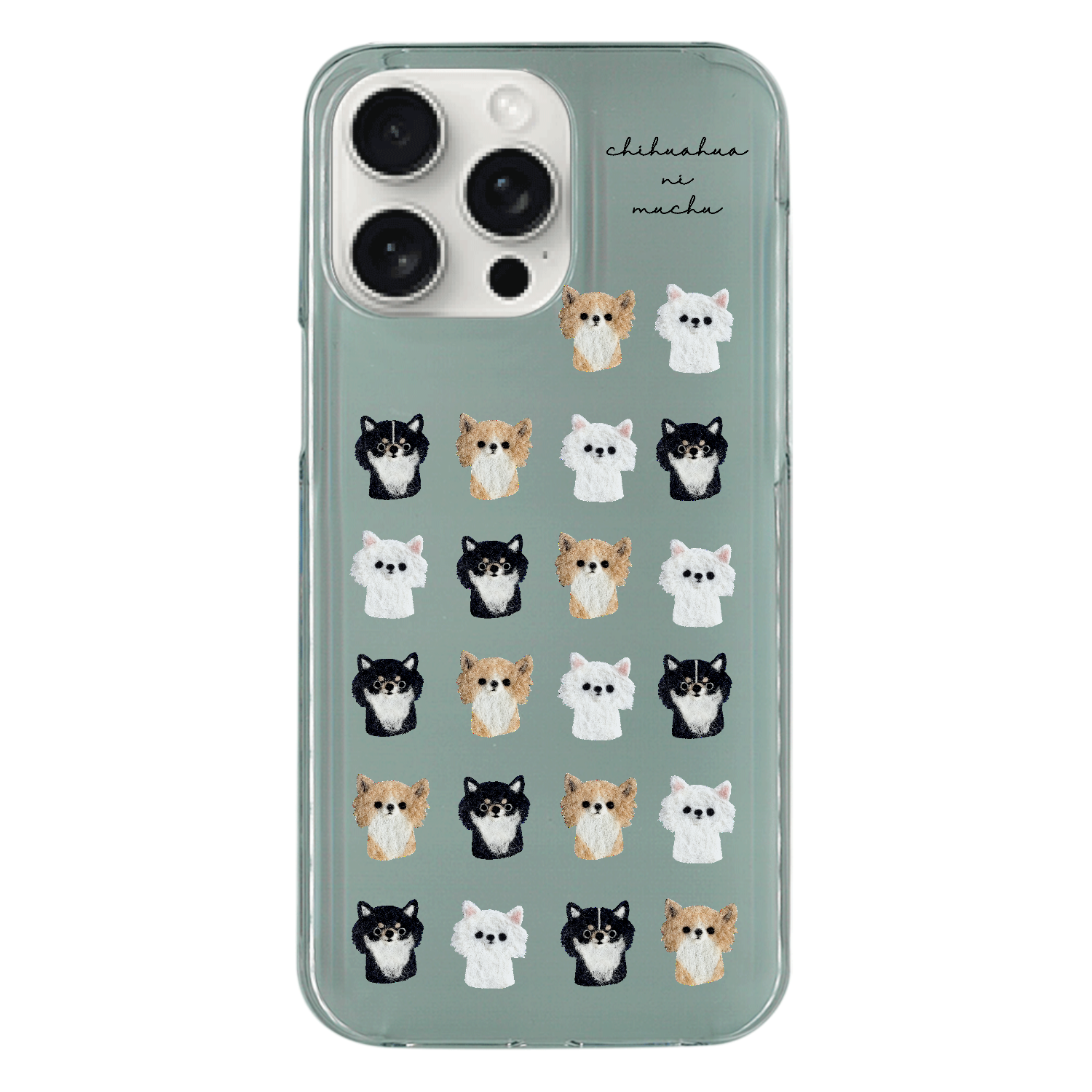 チワワ好きさんのための、チワワいっぱいのクリアスマホケースです。