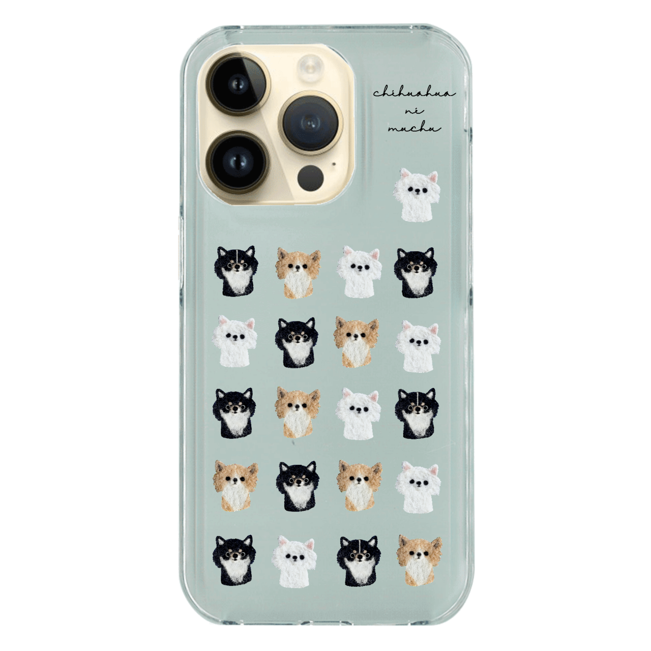 チワワ好きさんのための、チワワいっぱいのクリアスマホケースです。