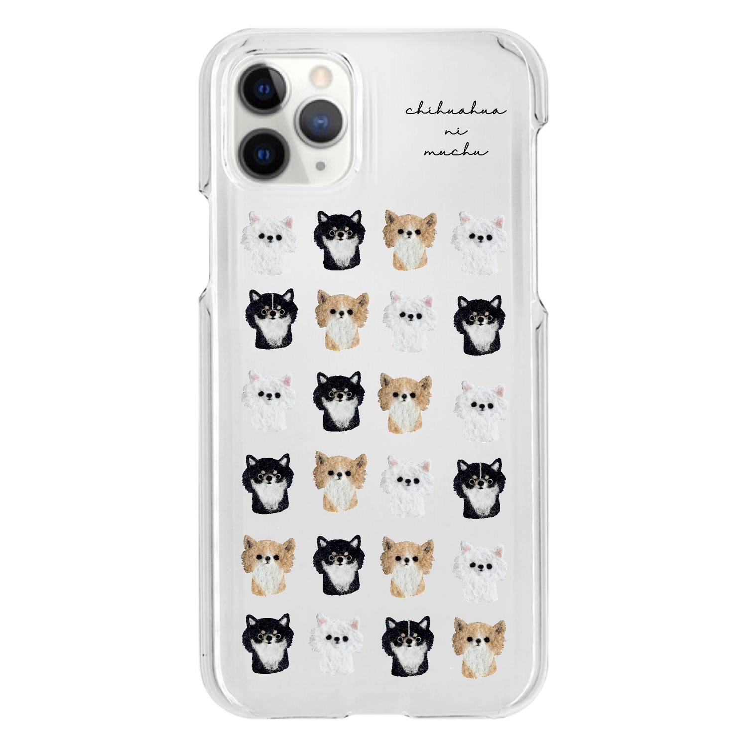 チワワ好きさんのための、チワワいっぱいのクリアスマホケースです。
